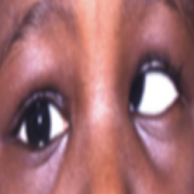 un œil qui louche (strabisme) en permanence ;